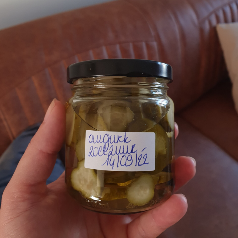 Je kunt de augurken goed afgesloten tot een jaar lang bewaren op een koele, donkere plek.