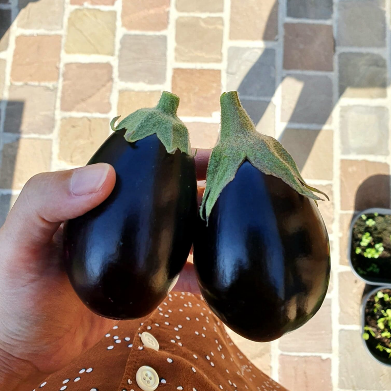 grill de aubergineplakjes in een beetje olijfolie in een grillpan